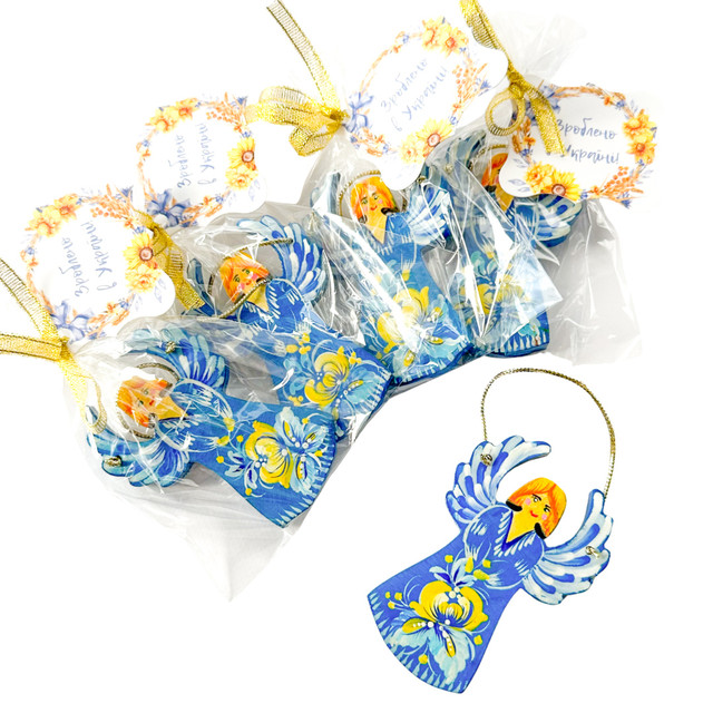 Новорічна іграшка, прикраса на ялинку з натурального дерева, підвіска на ялинку ЯНГОЛ-ОХОРОНЕЦЬ Український сувенір – це ручна робота з авторським художнім Петриківським розписом, ексклюзивний дизайн із змістом. Прикрасить вашу ялинку та інтер'єр, і атмосфера стане ще більш святковою та теплою!