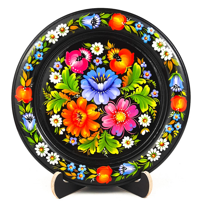 | Тип призначення (А1) | Тарілка декоративна Петровий розпис ЯРКИЙ БУКЕТ ручної роботи з дерева 20 см Український сувенір |